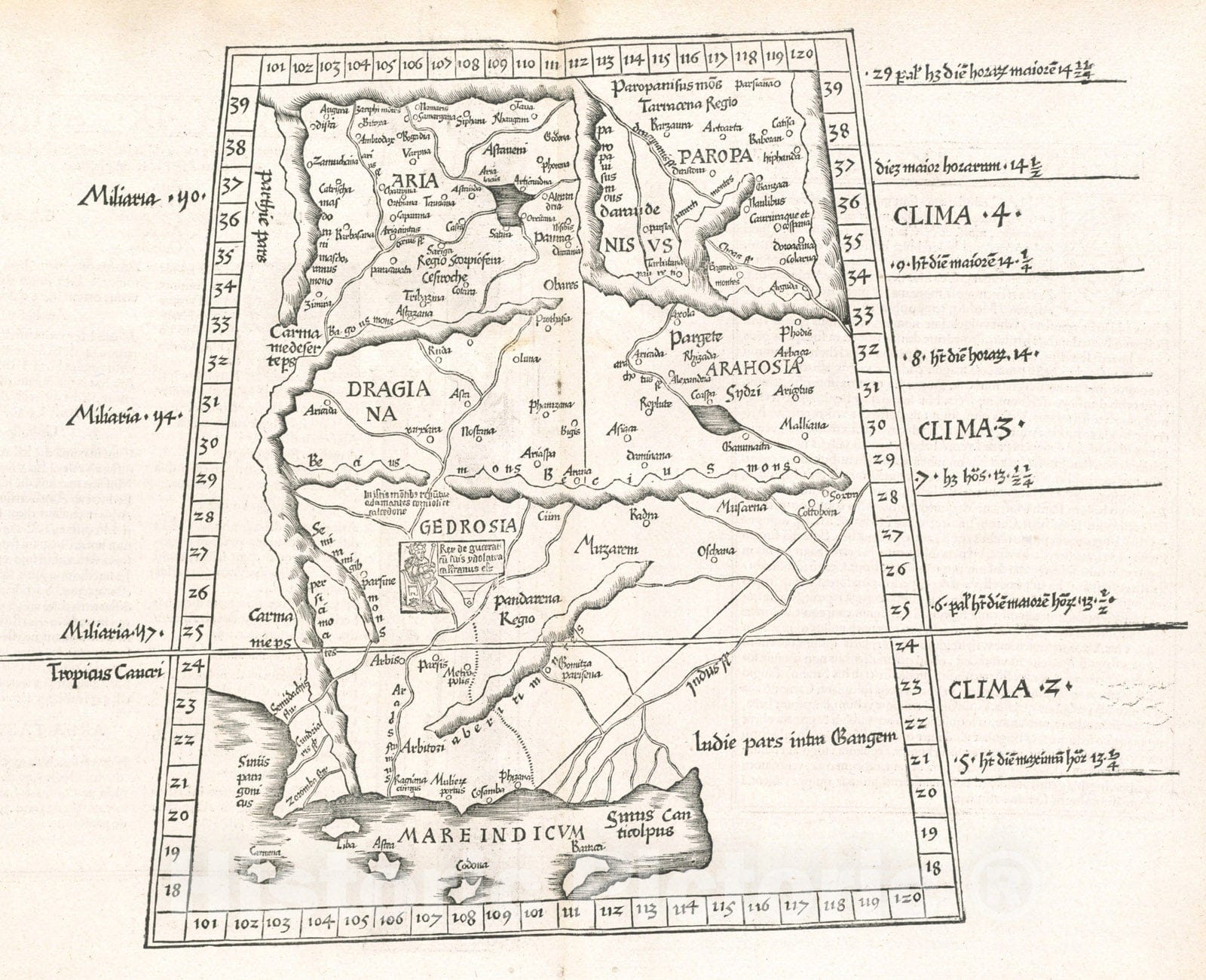 • .Historical Map, 1525 Tabula IX Asiae, Vintage Wall Art