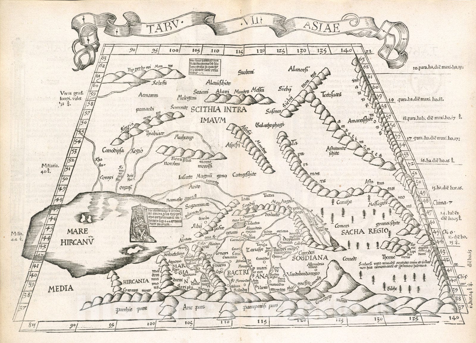Historical Map, 1525 Tabula VII Asiae, Vintage Wall Art