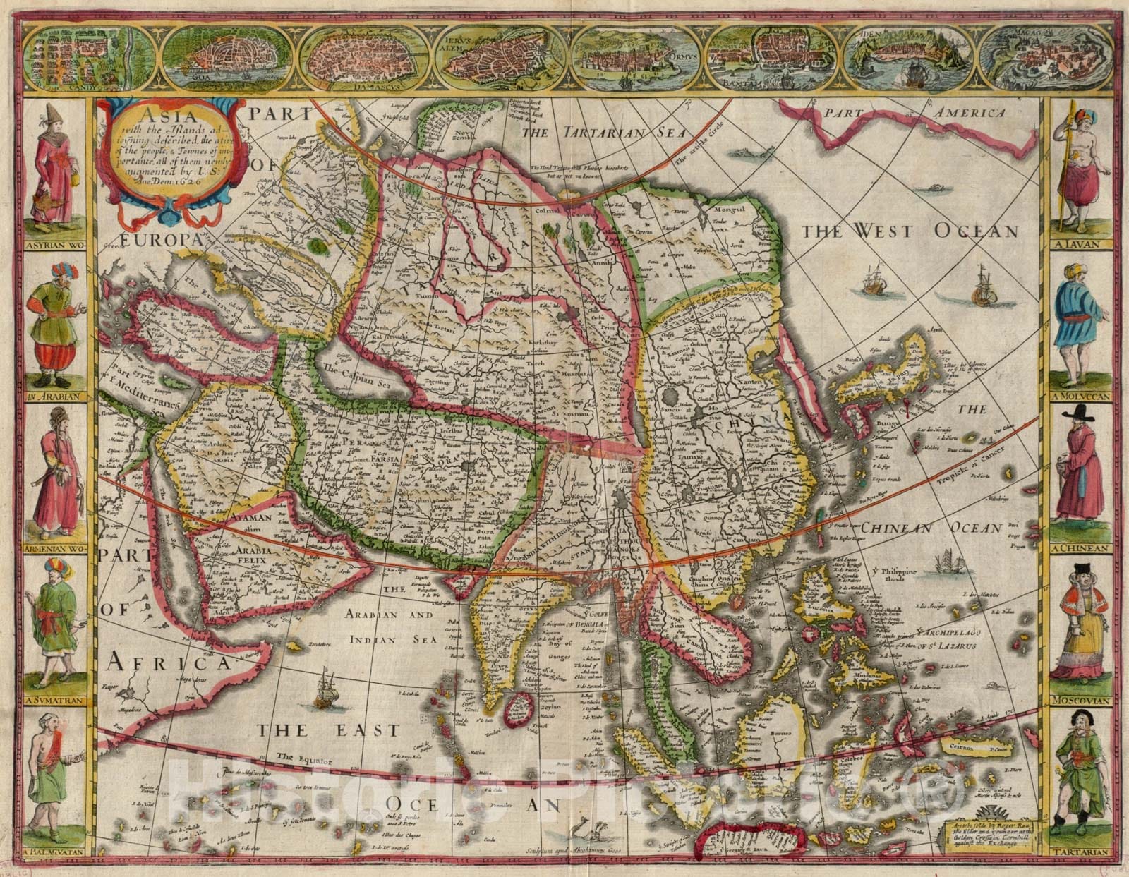 Historical Map, 1662 Asia : with The Islands adioyning described, The atire of The People, Townes of Importance, All of Them Newly Augmented, Vintage Wall Art