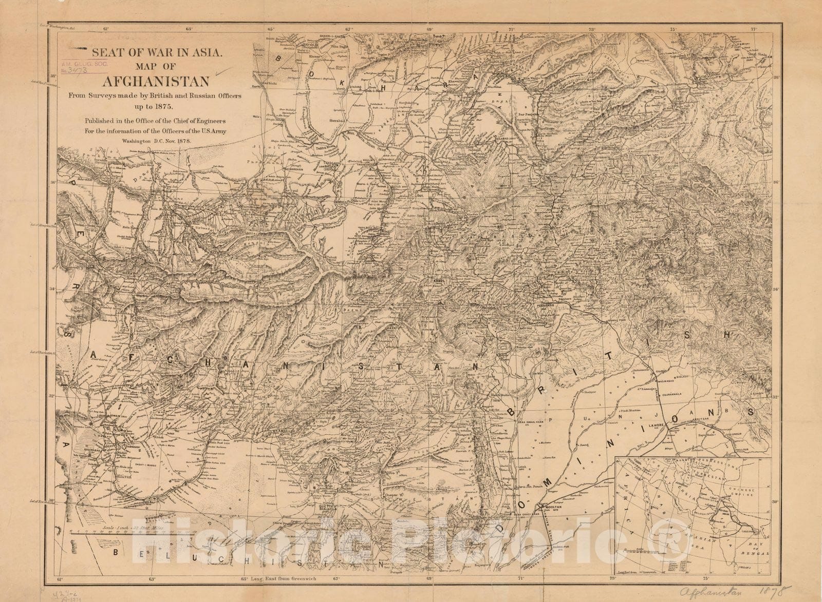 Map : Afghanistan 1878, Seat of war in Asia, map of Afghanistan : from surveys made by British and Russian officers up to 1875 , Antique Vintage Reproduction