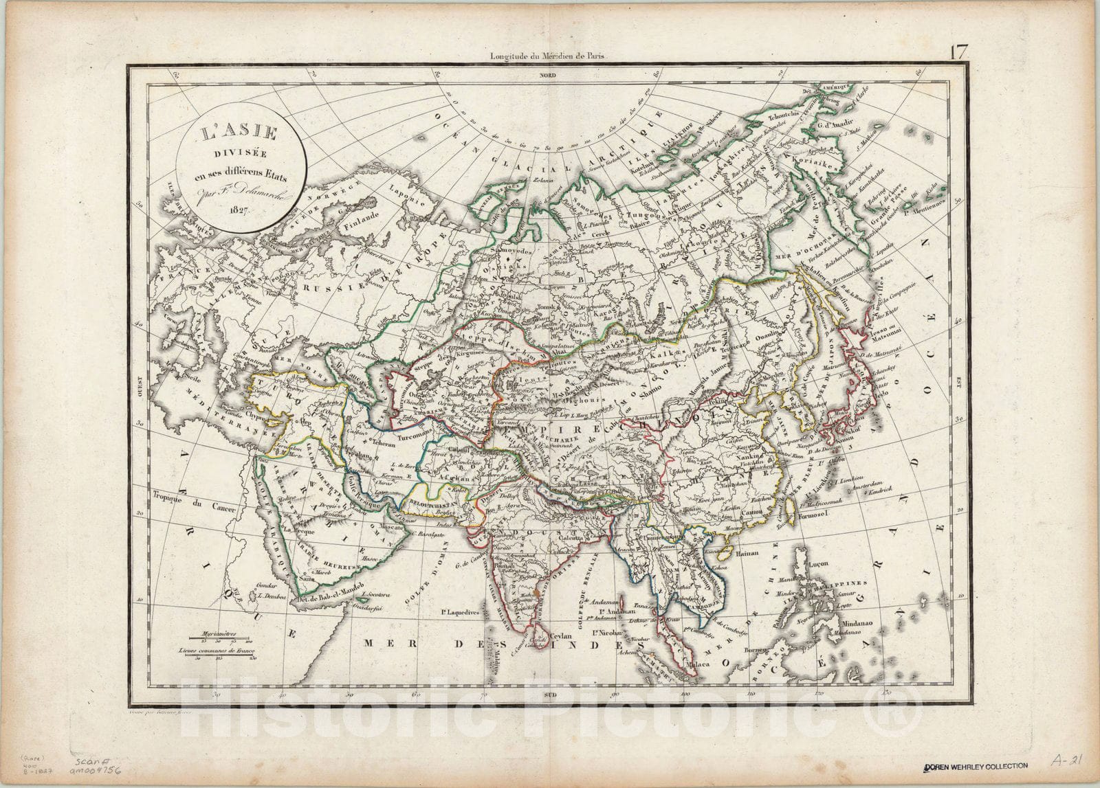 Map : Asia 1827, L'Asie divisee en ses differens Etats, Antique Vintage Reproduction
