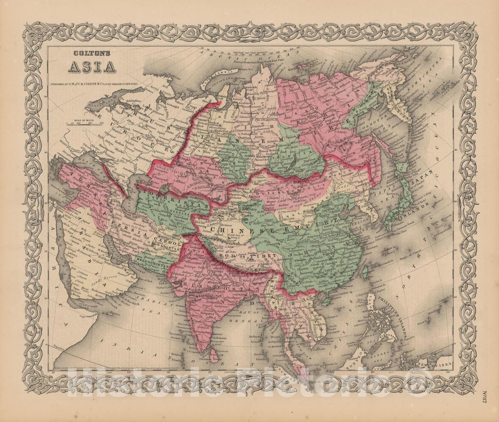 Historic Map : Asia 1856 , Colton's Atlas World , Vintage Wall Art