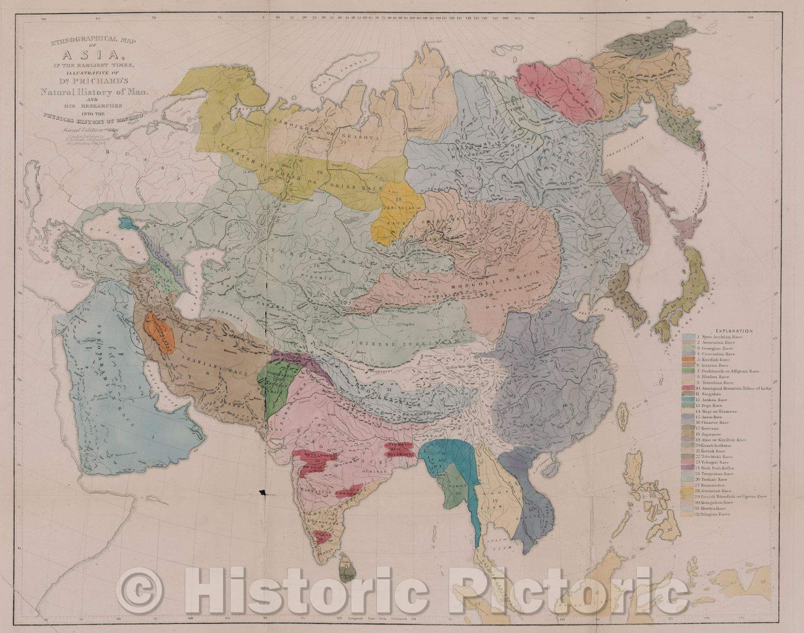 Historic Map : Ethnographical Map of Asia in the earliest times, illustrative of Dr. Prichard's Natural History, 1864 , Vintage Wall Art , v2