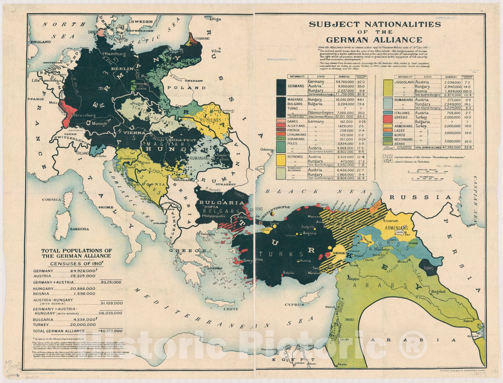 Map : Europe and Asia 1917, Subject nationalities of the German alliance