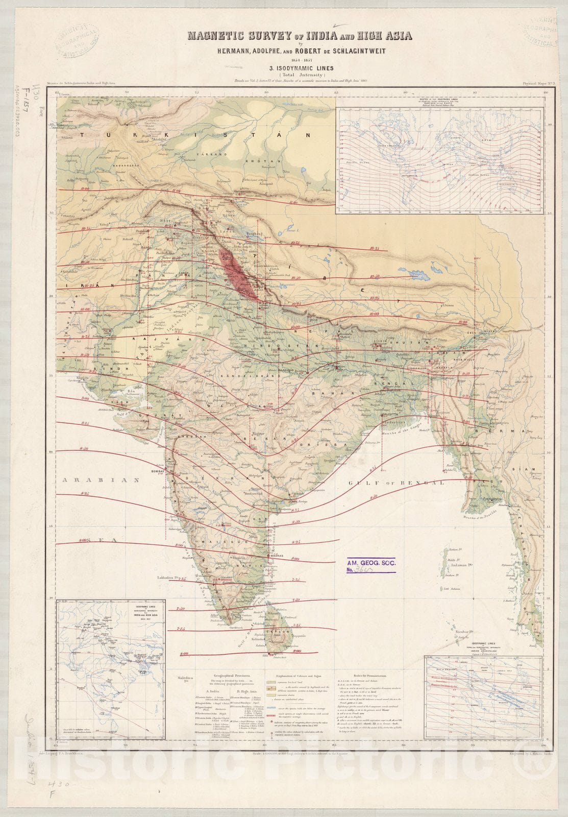 Map : India 1861 1, Magnetic survey of India and High Asia , Antique Vintage Reproduction