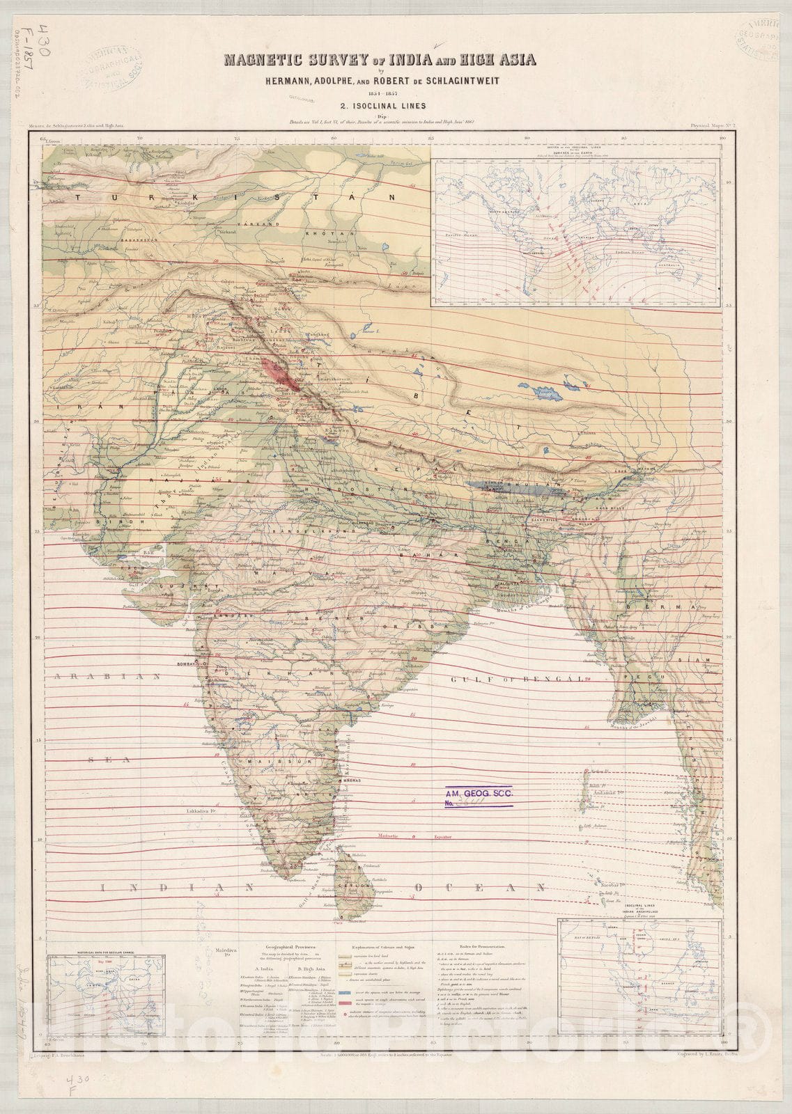 Map : India 1861 3, Magnetic survey of India and High Asia , Antique Vintage Reproduction