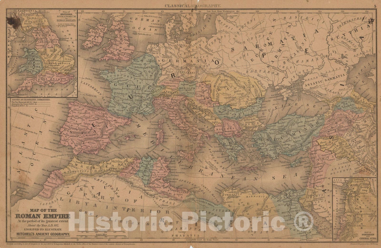 Historic Map : Mitchell's Ancient Atlas, Europe & Asia 1865 , Vintage Wall Art