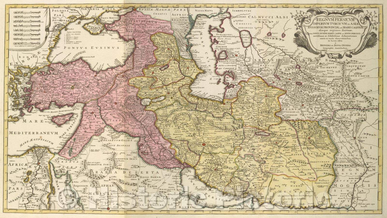 Historic Map : Regnum persicum imperium Turcicum in Asia Russorum provinciae ad Mare Caspium aliaeque regiones finitimae, item Ponti Euxini, Maris Caspii, 1700 , Vintage Wall Art