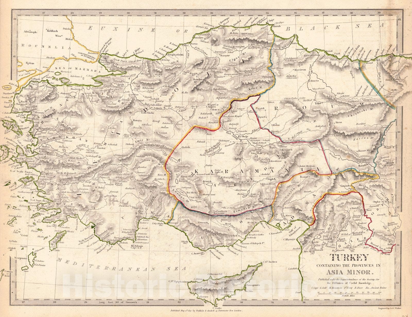 Vintage Map | 1830 Turkey Containing the Provinces in Asia Minor | Society for the Diffusion of Useful Knowledge