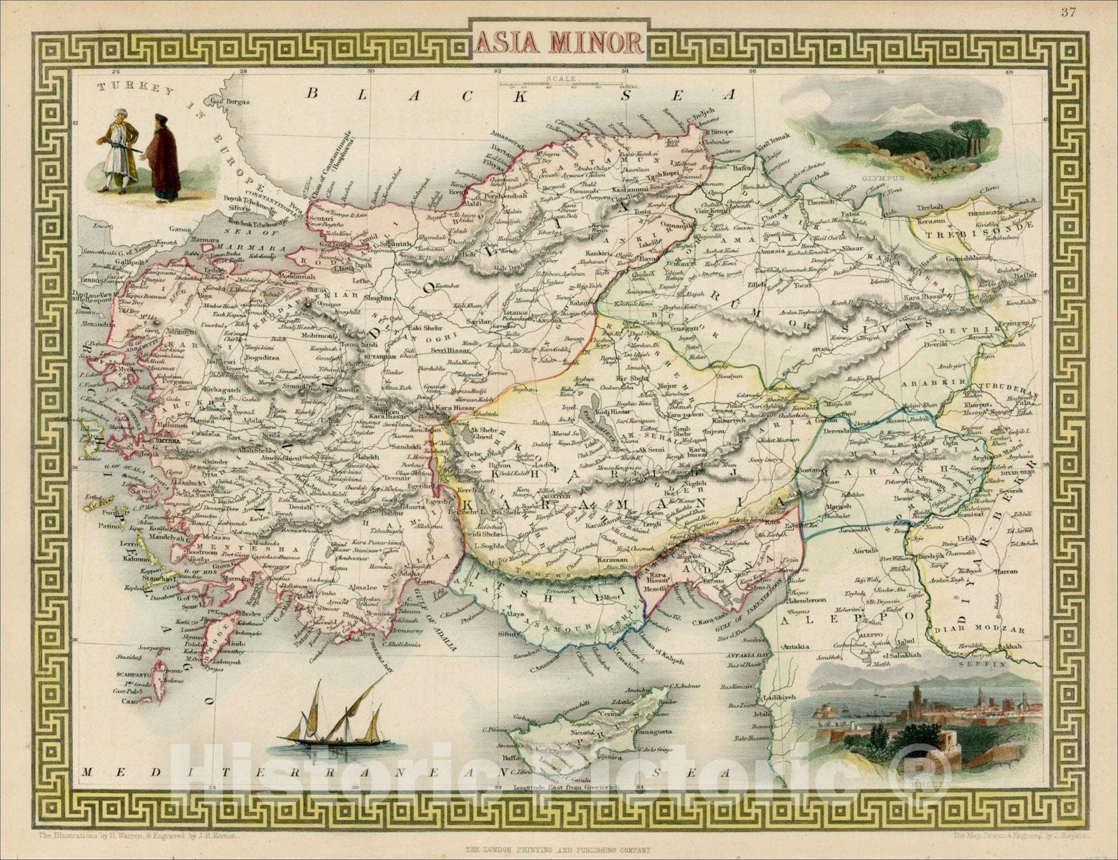 Historic Map : Asia Minor [shows Cyprus], 1851, John Tallis, v2, Vintage Wall Art