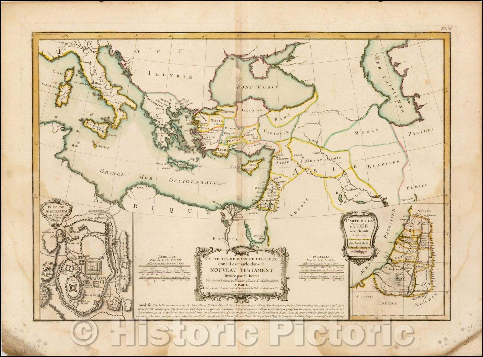 Historic Map - Carte Des Regions Et Des Lieux don?t il est parle dans/New Testament, Mediterranean, Lower Nile, Syria, Mespotamia, Asia Minoretc, 1763 - Vintage Wall Art