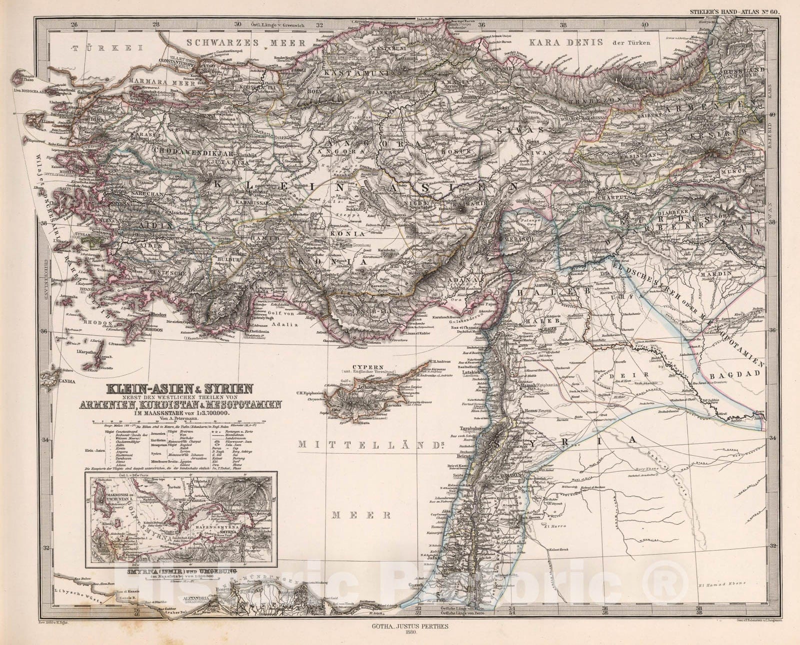 Historic Map : Klein-Asien & Syrien, Armenien, Kurdistan & Mesopotamien (Asia Minor, Syria, Kurdistan, Mesopotamia)., 1880, Vintage Wall Art