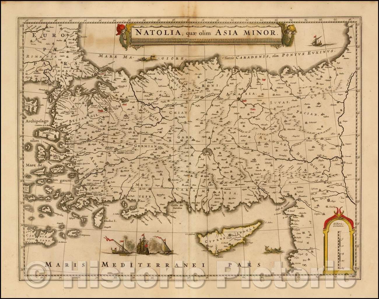 • .Historic Map - Natolia quae olim Asia Minor shows Cyprus, 1640, Willem Janszoon Blaeu v3