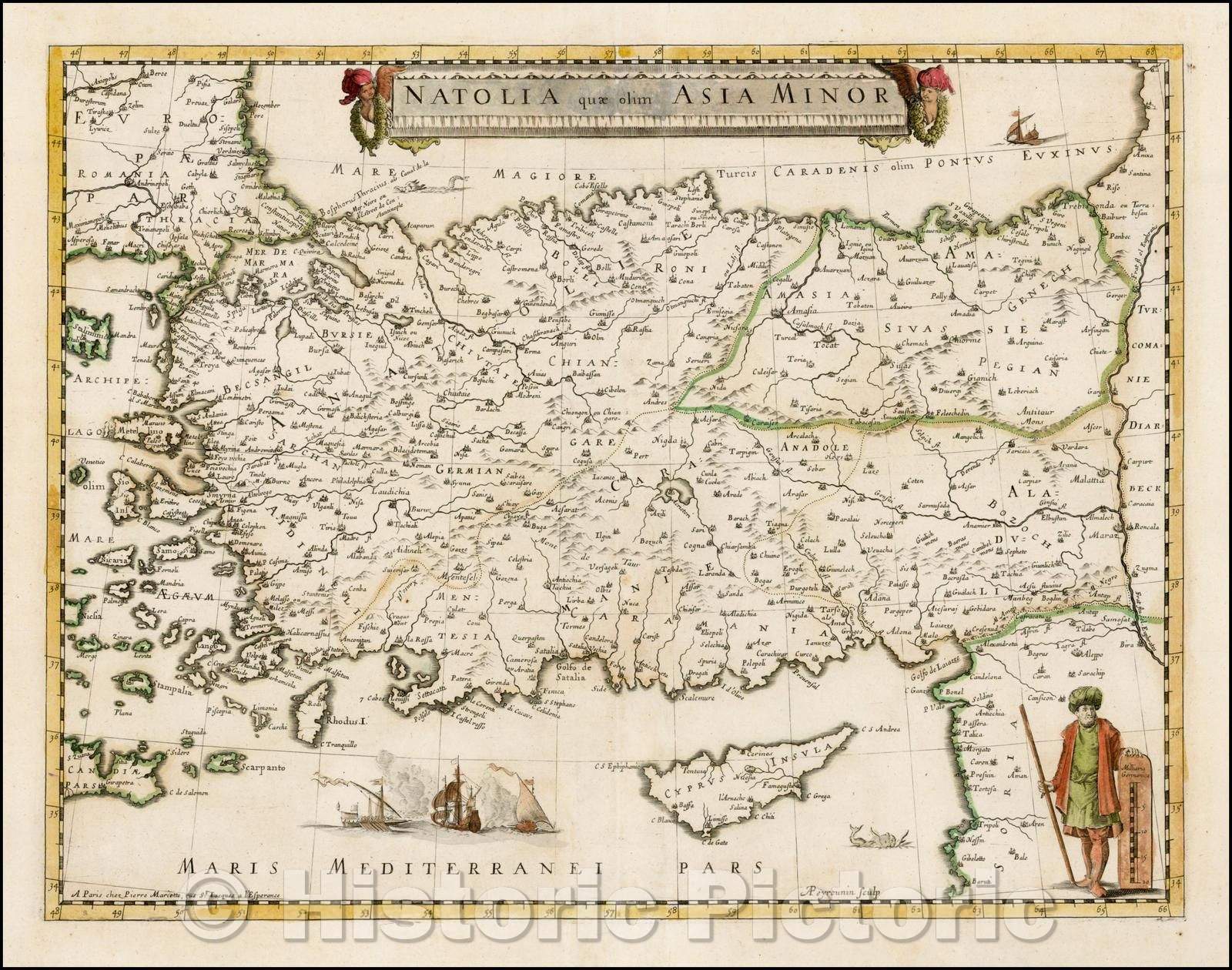 Historic Map - Natolia quae olim Asia Minor/Blaeu's Map of Asia Minor, showing Turkey, Cyprus and the Islands in the Aegean, 1658, Pierre Mariette - Vintage Wall Art