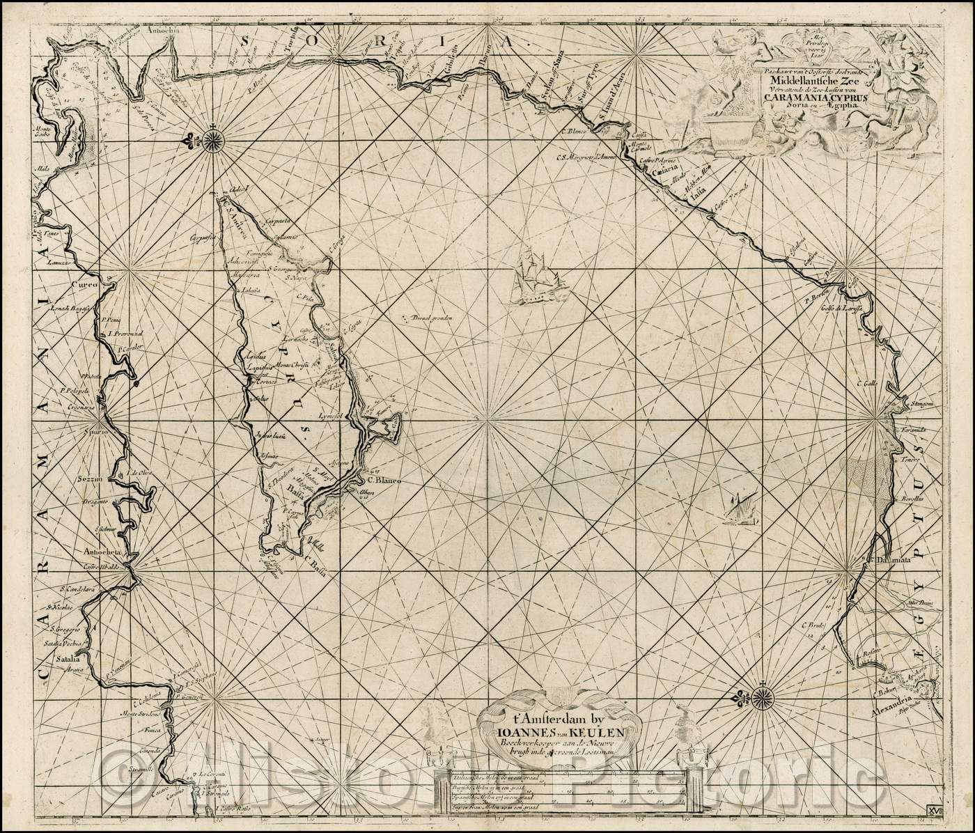 Historic Map - Pas-Kaart van t' Oosterste Deel vande Middellantsche Zee Verva :: Dutch Sea-Chart, Cyprus, Egypt, Palestine, Syria and Asia Minor, 1730 - Vintage Wall Art