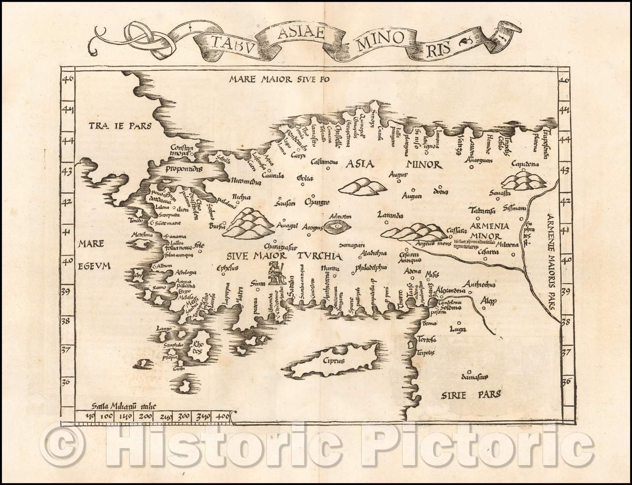• .Historic Map - Tabu Asiae Minoris (Cyprus shown) / Fries Map of Asia Minor and Cyprus, based upon the work of Claudius Ptolemy, 1525, Lorenz Fries - Vintage Wall Art