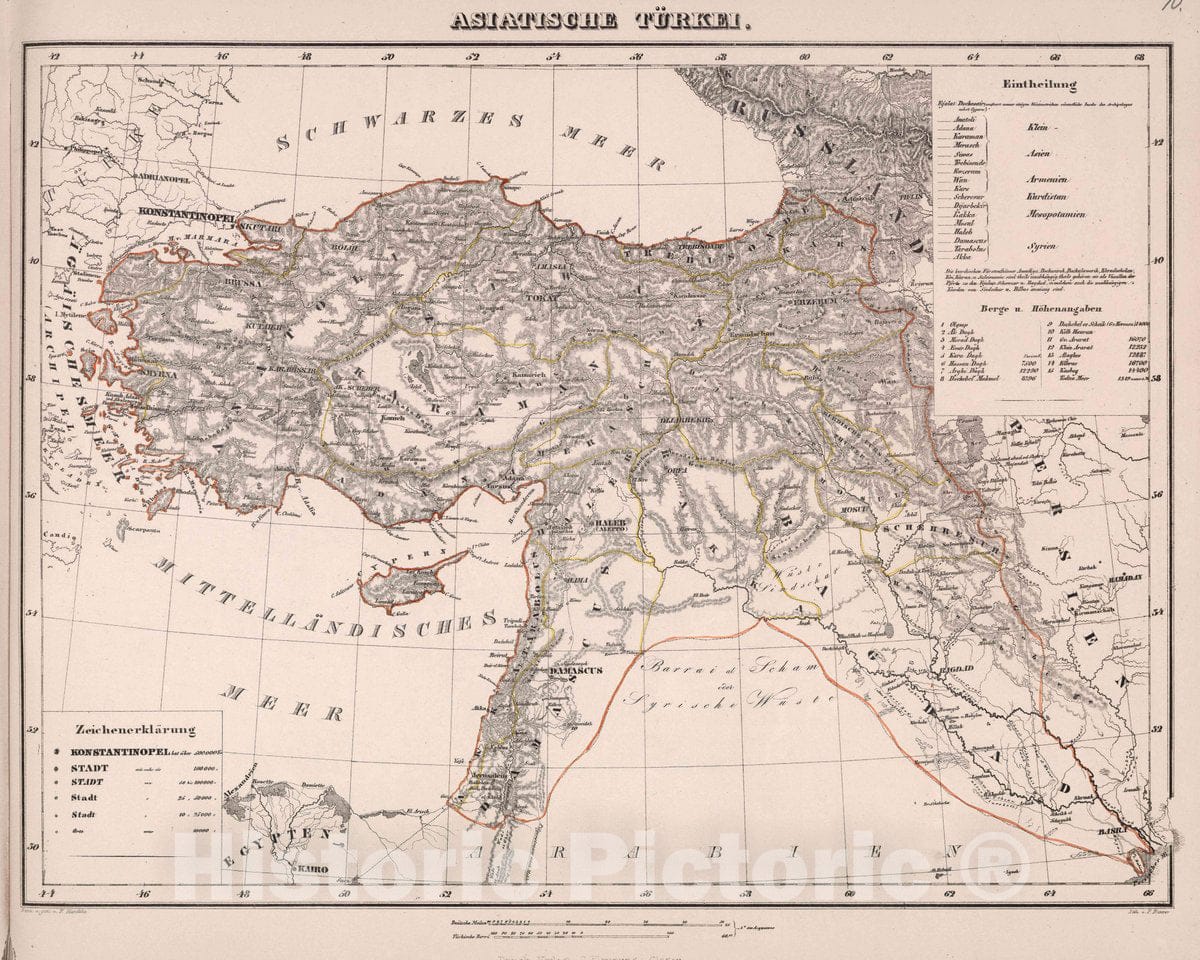 Historic Map : Turkey, Asia Minor Asiatische Tuerkei, 1847 Atlas , Vintage Wall Art