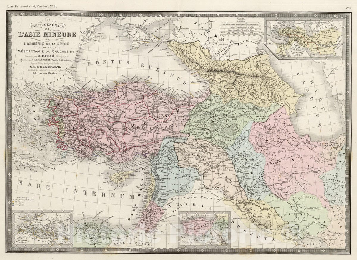 Historic Map : Turkey; Syria; Iran; Iraq, Asia Minor 1875 Asie Mineure, Armenie, Syrie, Mesopotamie. , Vintage Wall Art