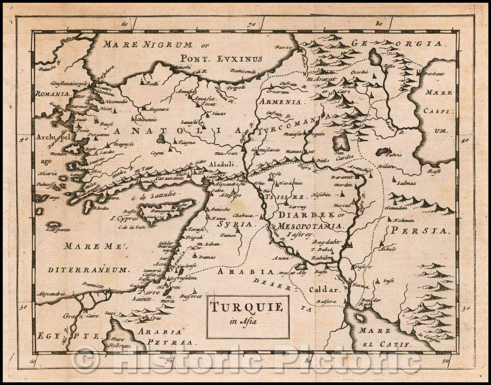 Historic Map - Turquie in Asia/Map of Asia Minor and environs, published by Sir Jonas Moore in London, 1681, Sir Jonas Moore - Vintage Wall Art