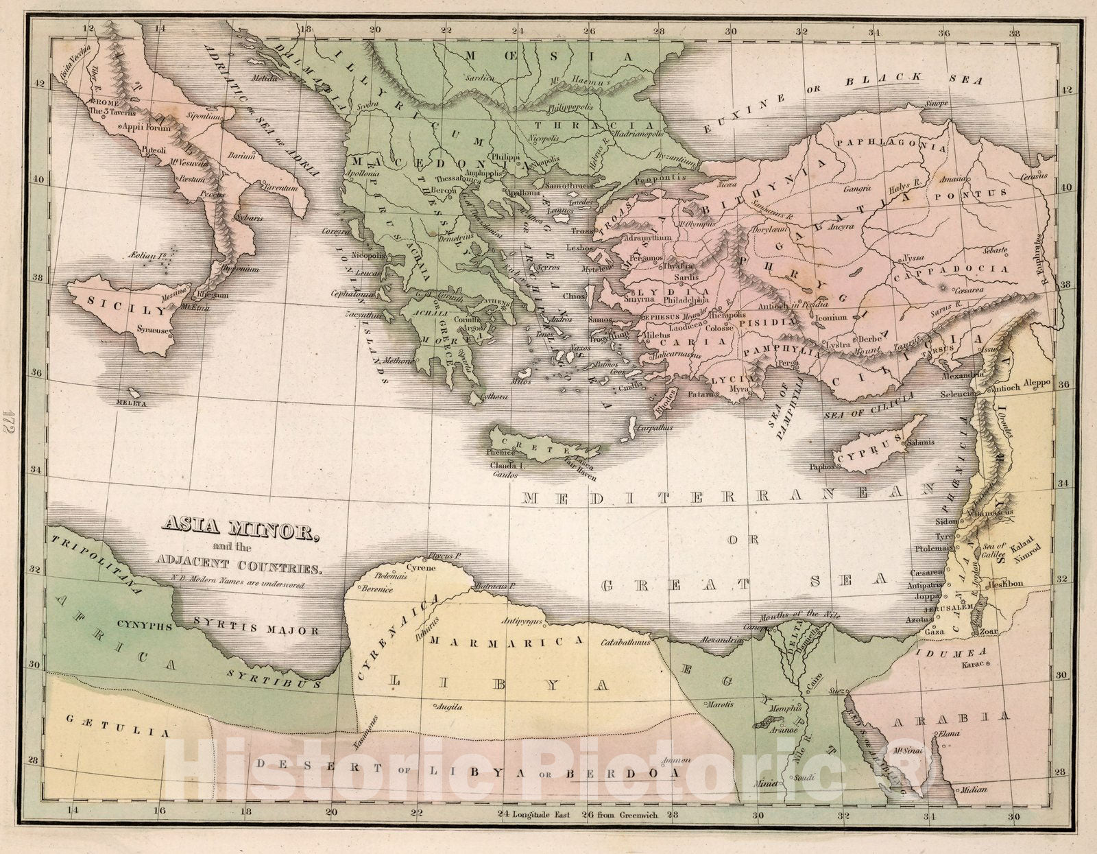 • .Historic Map : World Atlas Map, Asia Minor and the adjacent countries 1838 - Vintage Wall Art