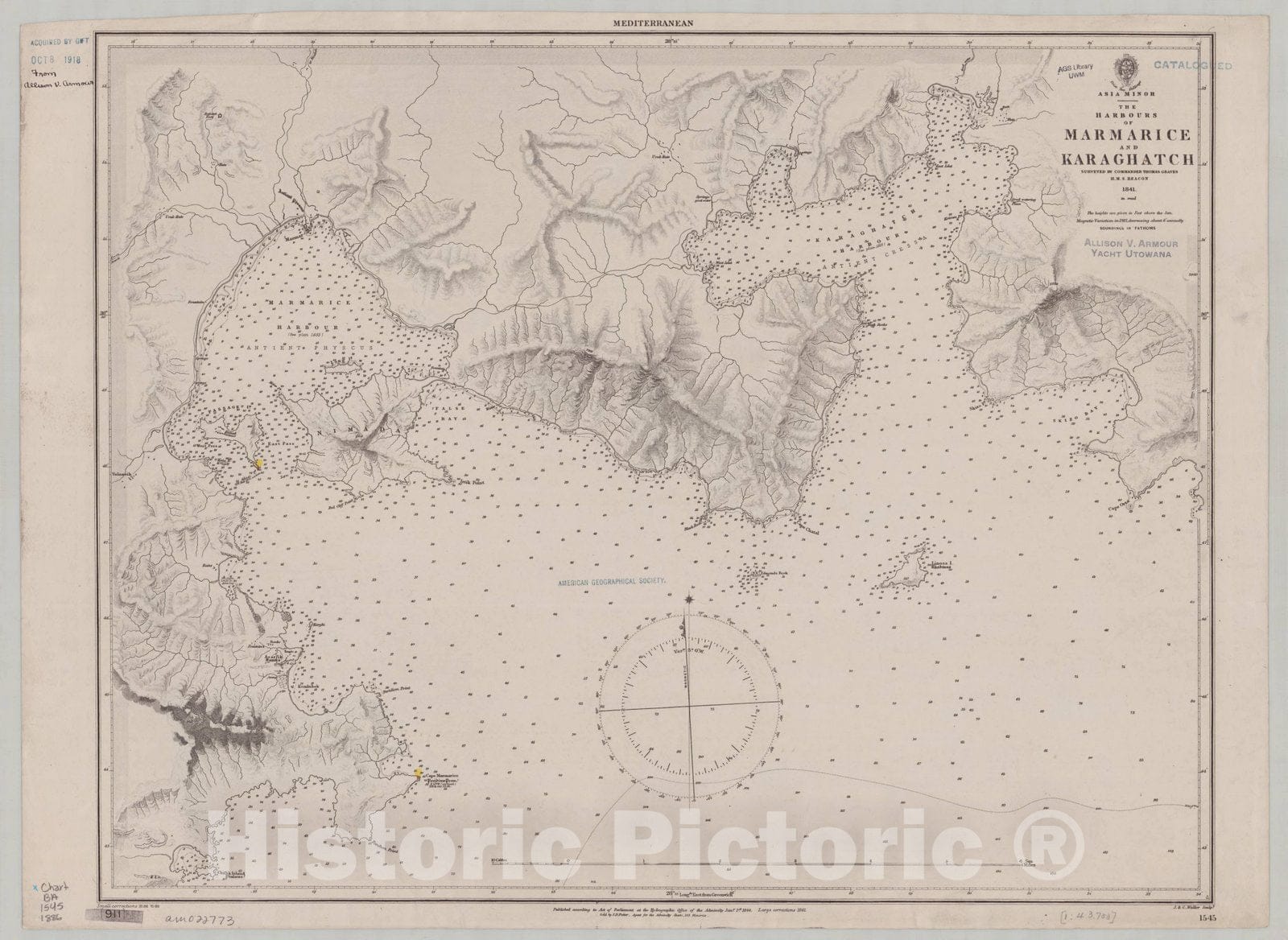 • .Map : Marmaris, Turkey 1886, Asia Minor, the Harbours of Marmarice and Karaghatch , Antique Vintage Reproduction