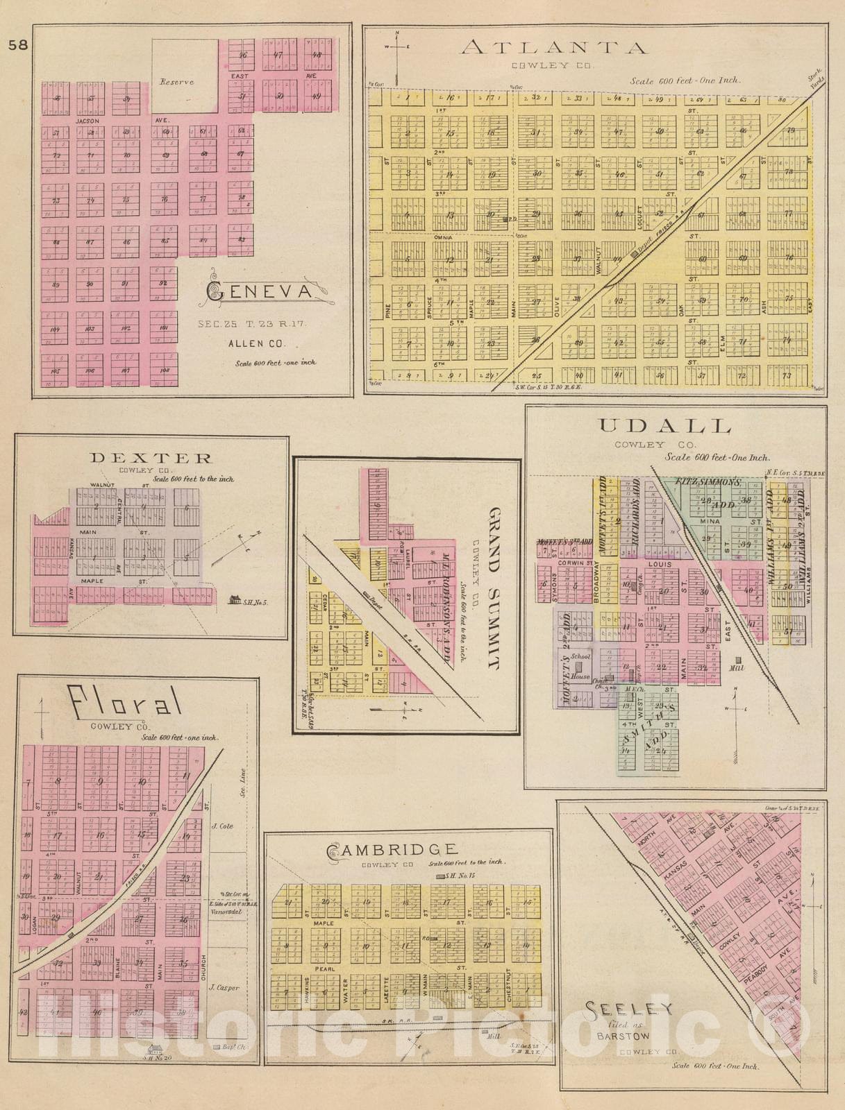 Historic Map : 1887 Geneva, Atlanta, Dexter, Grand Summit, Udall, Floral, Cambridge, Seeley. - Vintage Wall Art