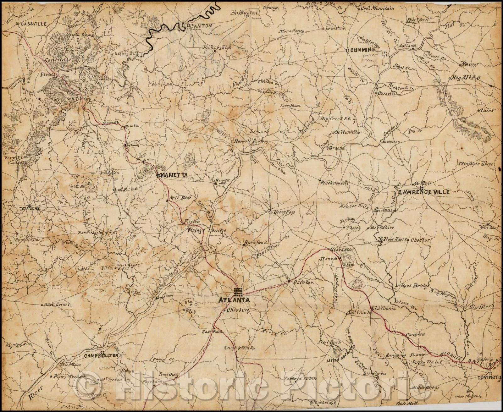 Historic Map - Manuscript Officers Map - Siege of Atlanta, 1864, Anonymous - Vintage Wall Art