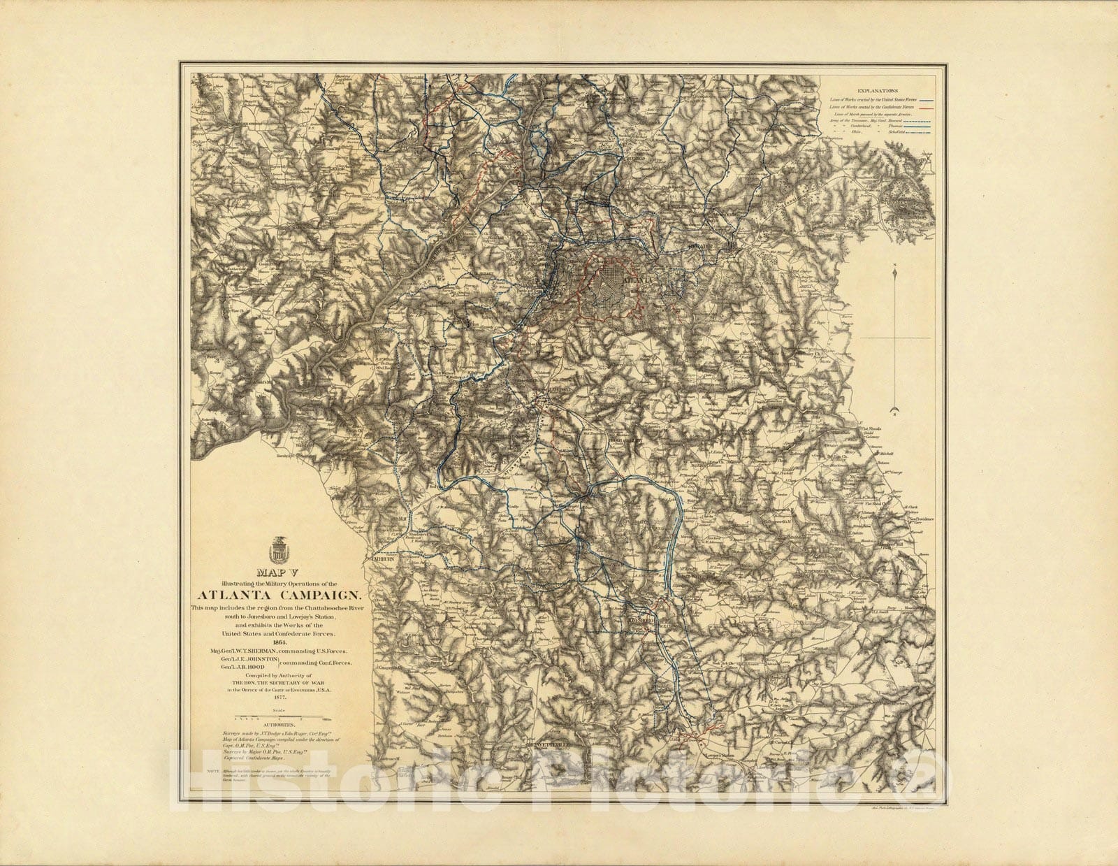 Historic Map : Map V illustrating the Military Operations of the Atlanta Campaign, 1877 - Vintage Wall Art