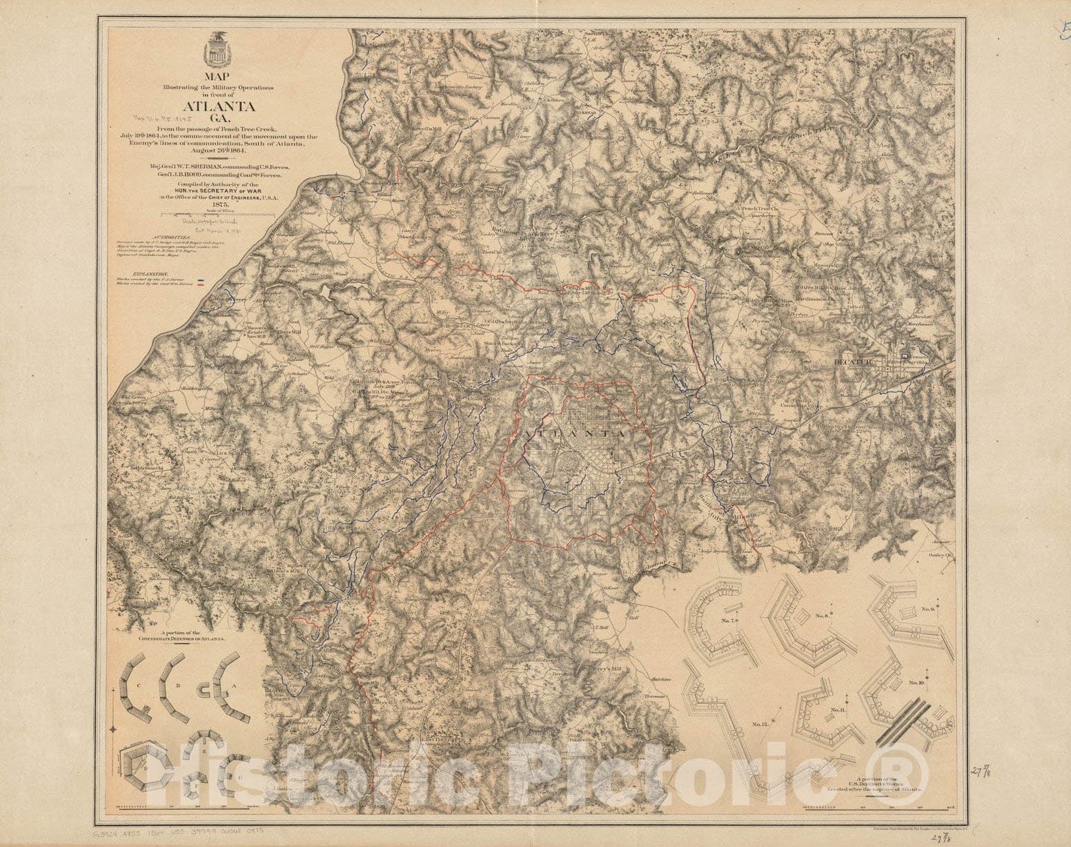 Historical Map, Map Illustrating The Military Operations in Front of Atlanta, Ga : from The Passage of Peach Tree Creek, July 19th, 1864, Vintage Wall Art