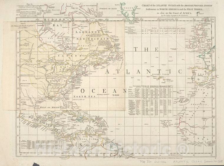 Historic 1762 Map - Chart Of The Atlantic Ocean, With The British, French, Spanish