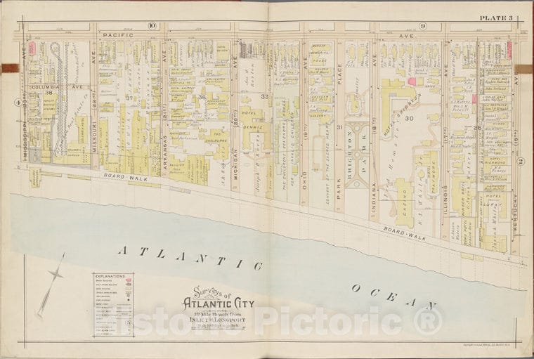 Historic Map - 1896 Atlantic City, New Jersey (N.J.), Double Page Plate No. 3 [Pacific Ave, Kentucky Ave, Atlantic Ocean, Mississippi Ave.]
