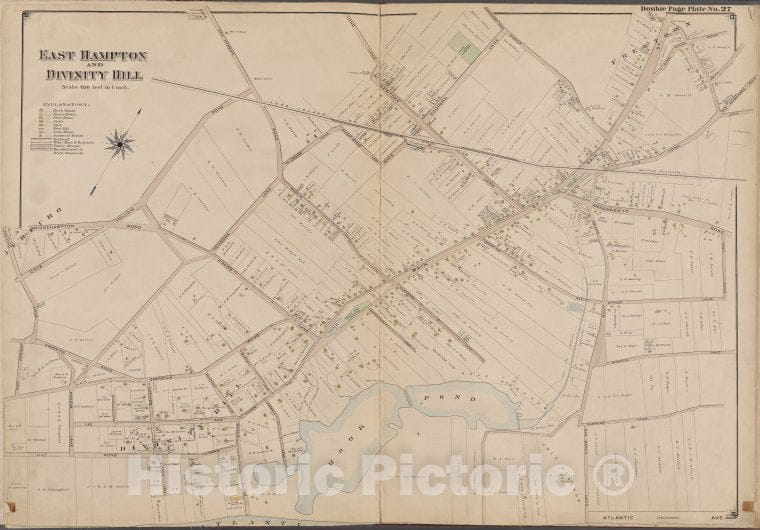 • .Historic Map - 1902 Suffolk County, New York (N.Y.), Suffolk County, V. 1, Double Page Plate No. 27 [Amys Lane, Atlantic Ave, Atlantic Ocean, Jericho Lane] - Vintage Wall Art