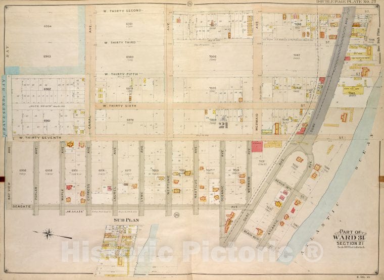 Historic Map - 1907 Brooklyn, (New York, N.Y.), W. 32Nd St Atlantic Ocean, Beach 40Th St; Including Surf Ave, Seagate Ave, Bay View Ave, Gravesend Bay, Canal
