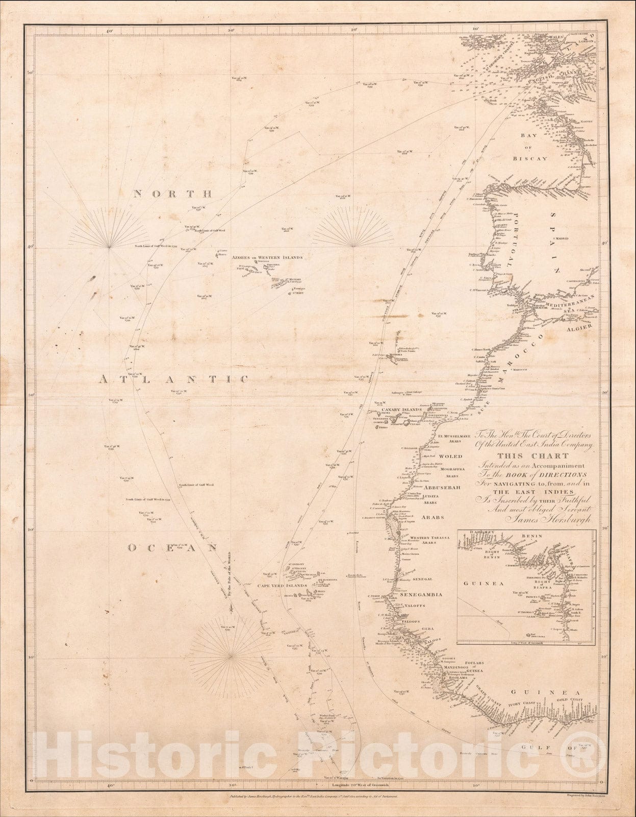 Historic Map : Atlantic Ocean from the latest Book of Directions For Navigating to, from and in the East Indies, 1814, , Vintage Wall Art