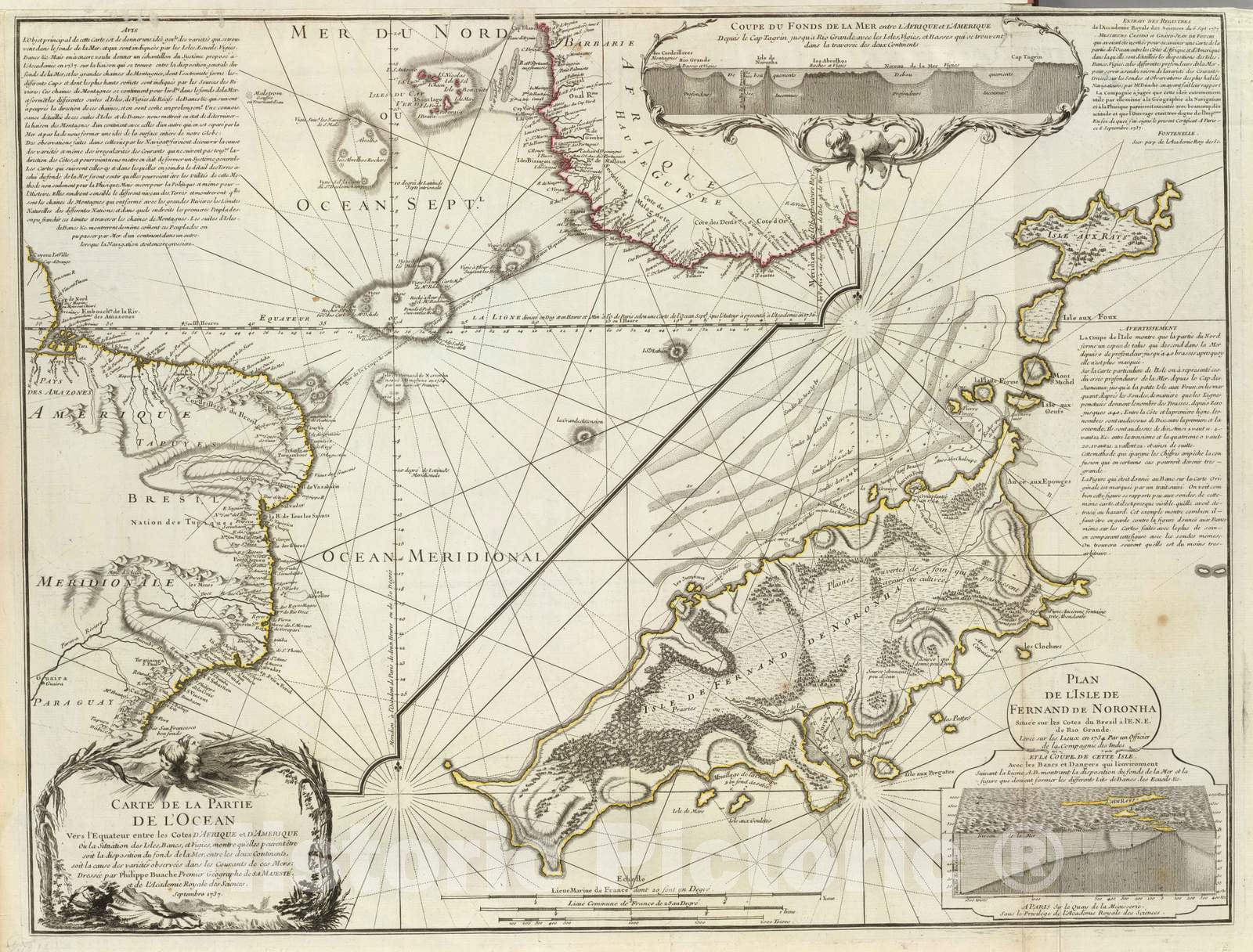 Historic Map : Brazil, Fernando de Noronha (Island), Atlantic 1737 L'Ocean, Fernand de Noronha. , Vintage Wall Art