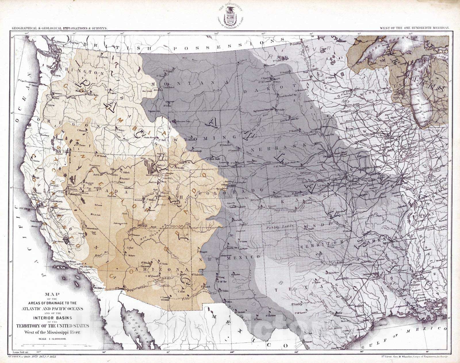 Historic Map : National Atlas - 1873 Map Of The Areas Of Drainage To The Atlantic And Pacific Oceans. - Vintage Wall Art