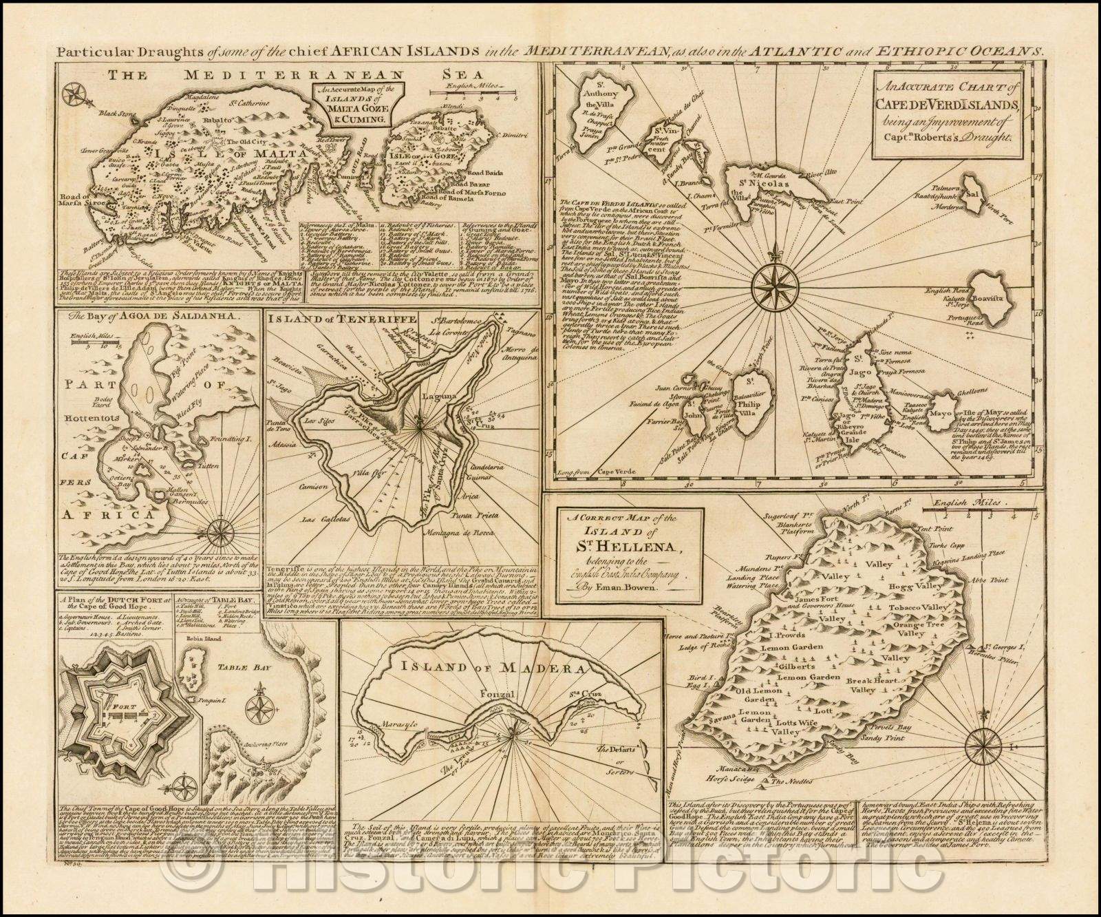 Historic Map - Particular Draughts of some of the chief African Islands in the Mediterranean, as also in the Atlantic and Ethiopic Oceans [shows Malta], 1747 v2