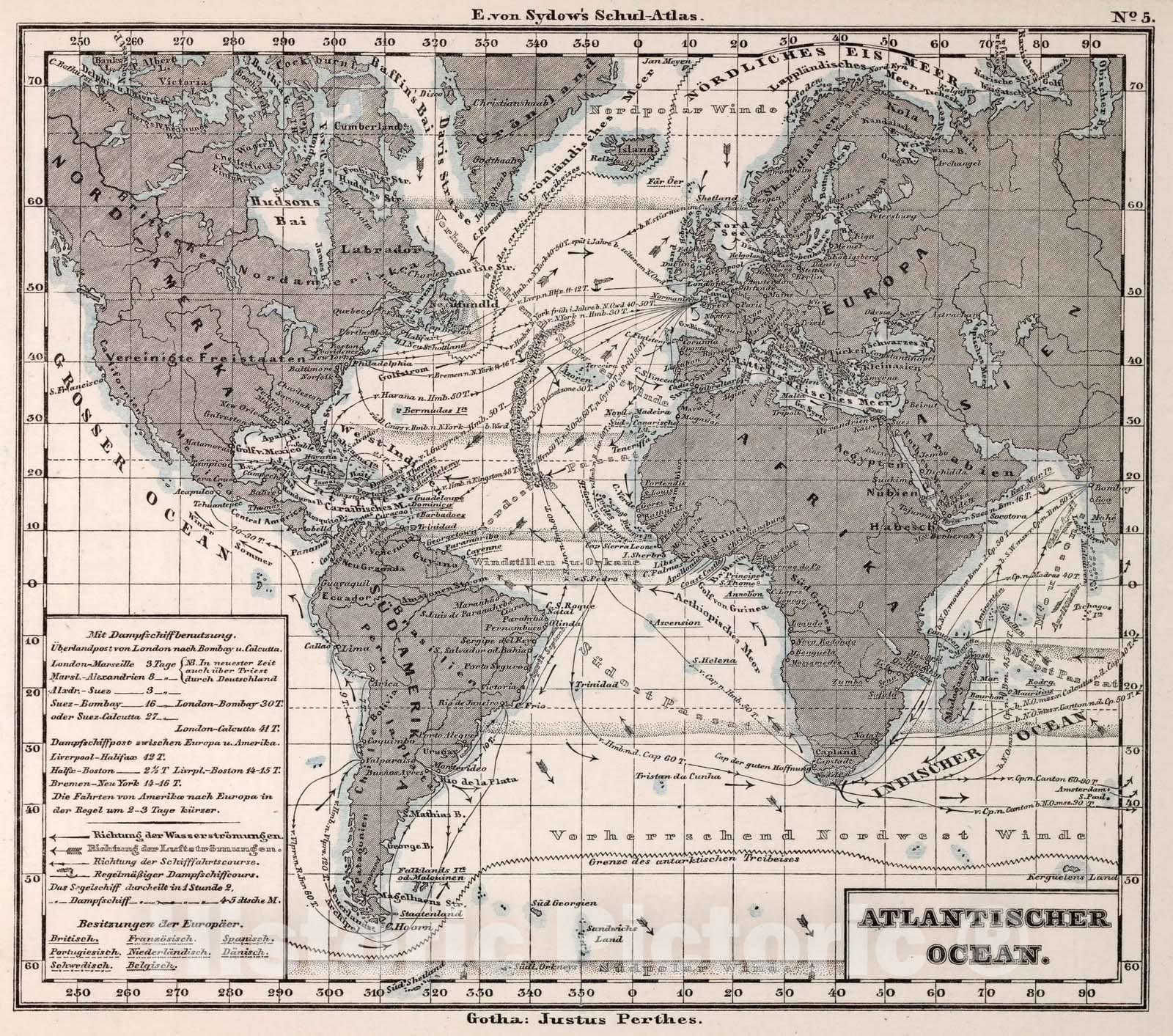 Historic Map : School Atlas Map, 5. Atlantischer Ocean. Atlantic Ocean. 1872 - Vintage Wall Art