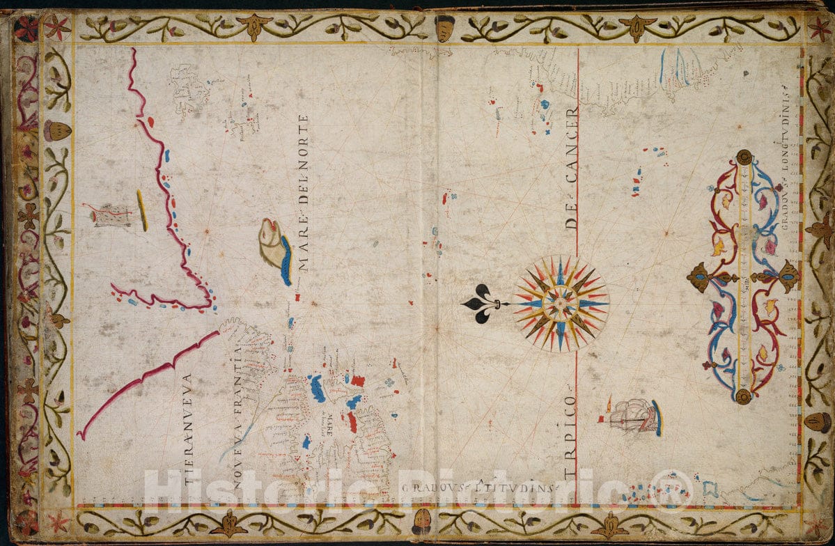 Historical Map, ca. 1620 Northeastern North America and North Atlantic Ocean, Vintage Wall Art