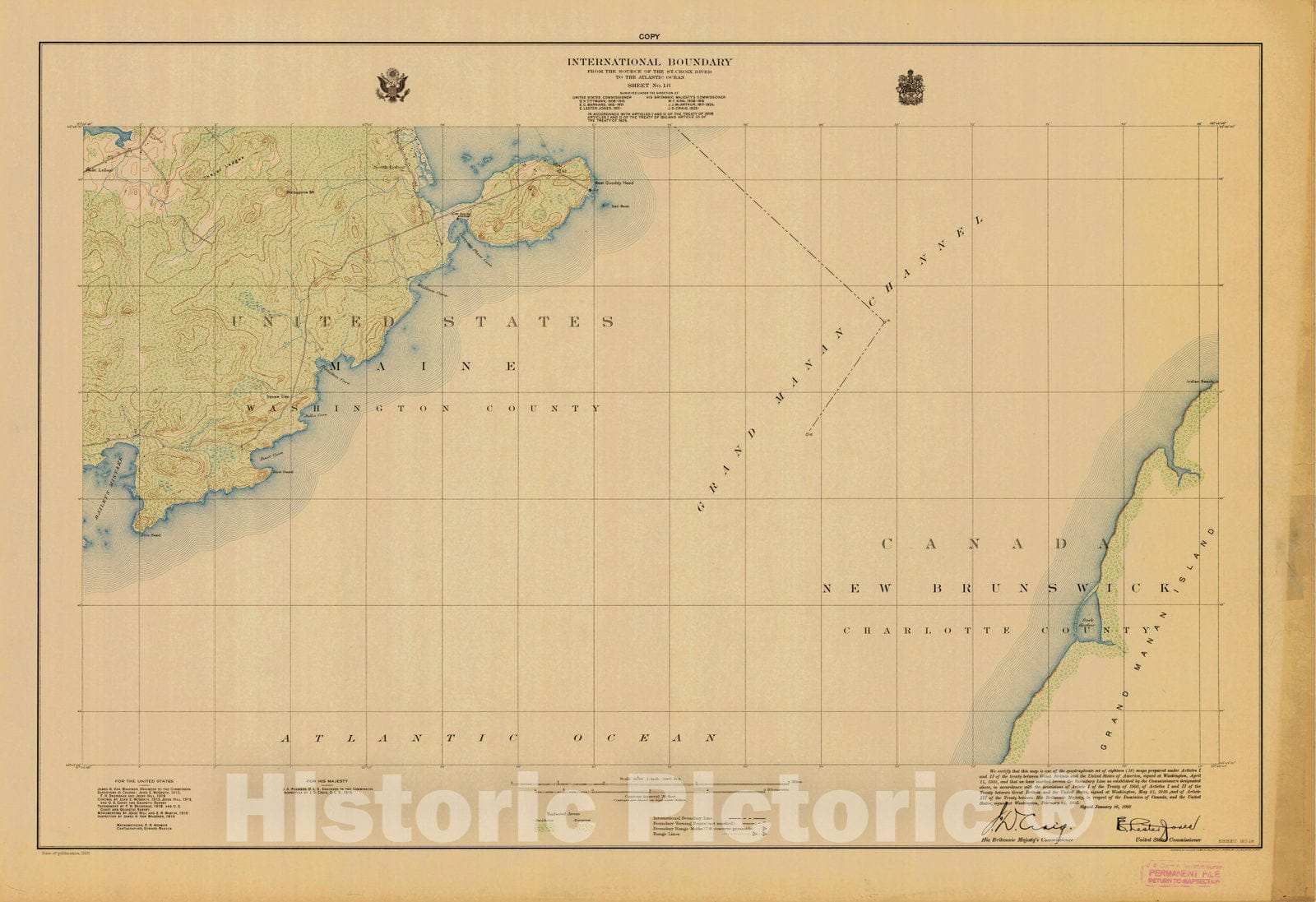 Historic Nautical Map - International Boundary, From The Source Of The St. Croix River To The Atlantic Ocean, Sheet No.18, ME, 1928 NOAA Topographic - Vintage Wall Art