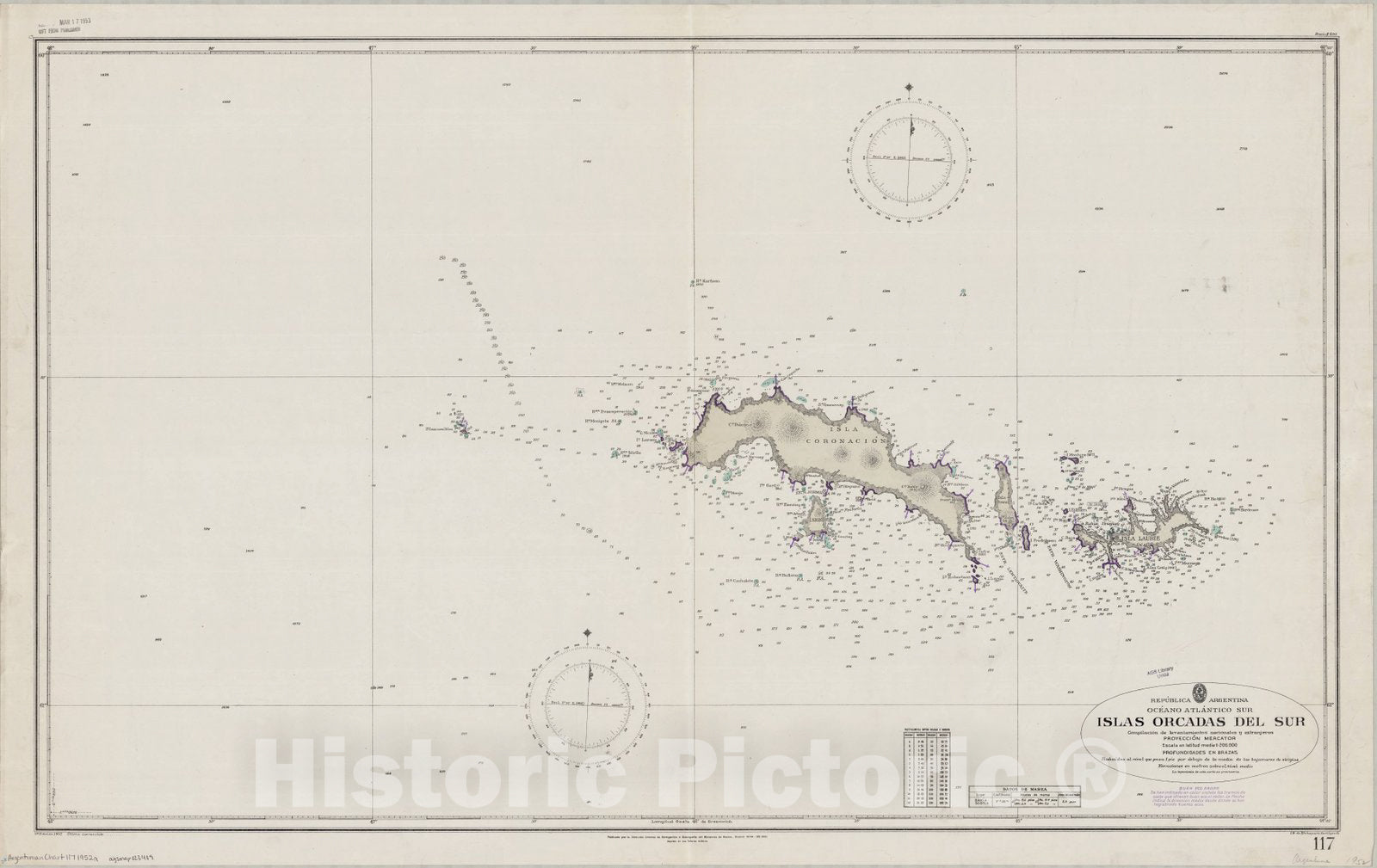 Map : Orkney Islands 1952, Republica Argentina, Oceano Atlantico Sur, Islas Orcadas del Sur , Antique Vintage Reproduction