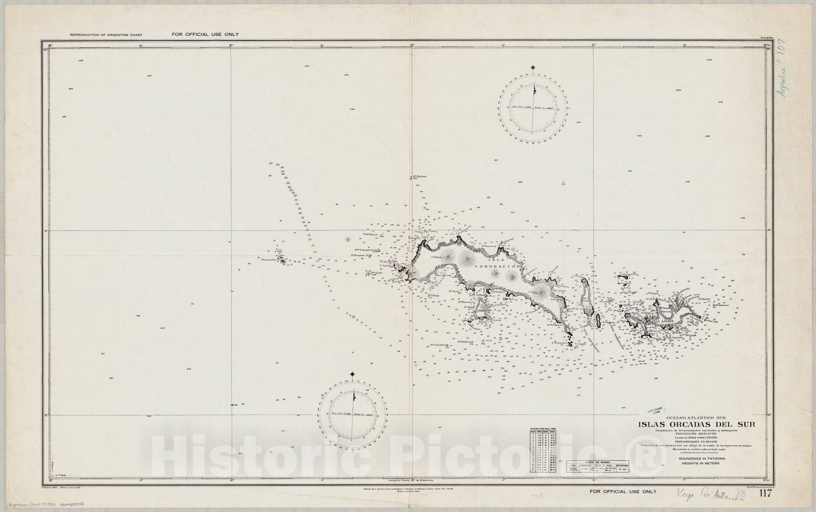 Map : South Orkney Islands 1952, Oceano Atlantico Sur, Islas Orcadas del Sur , Antique Vintage Reproduction