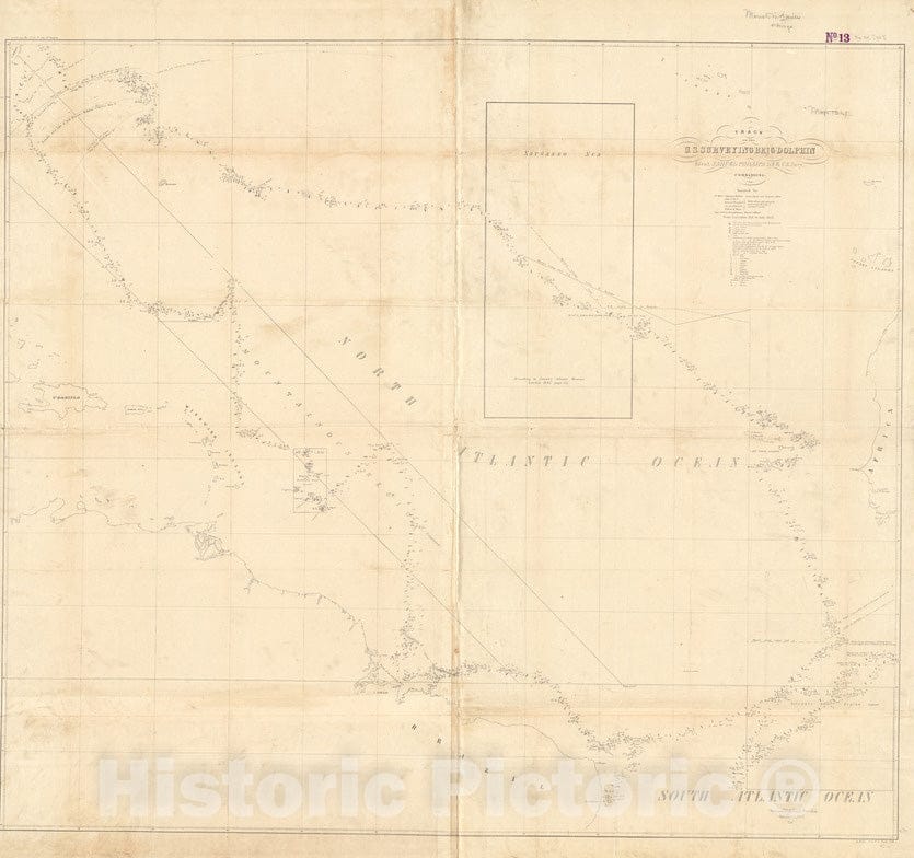Historical Map, Track of The U.S. Surveying brig Dolphin : from September 1851 to July 1852 : [Atlantic Ocean], Vintage Wall Art