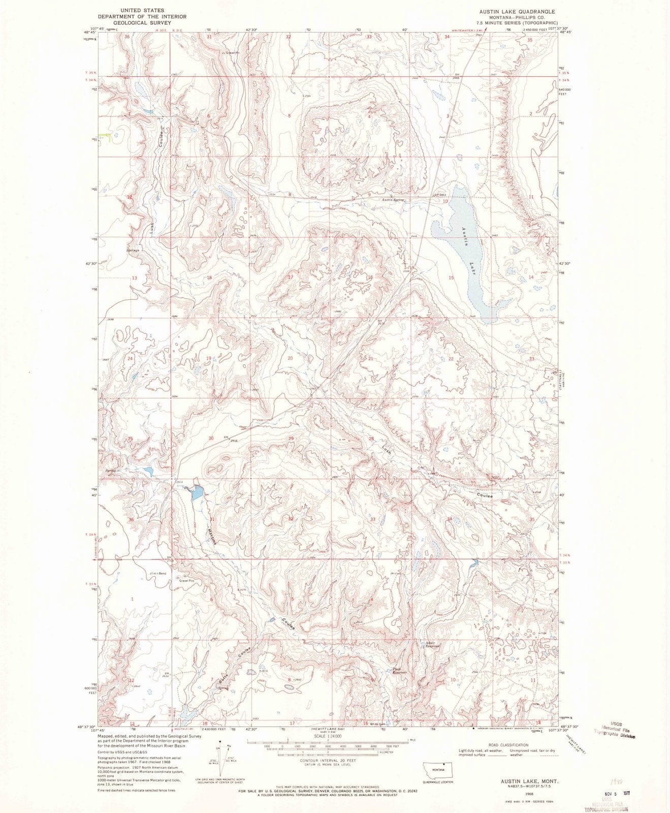 1968 Austin Lake, MT - Montana - USGS Topographic Map
