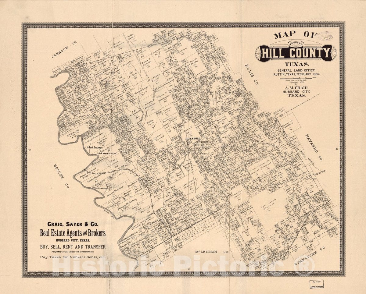 • Historic 1886 Map - Map of Hill County, Texas : General Land Office, Austin, Texas, February 1886