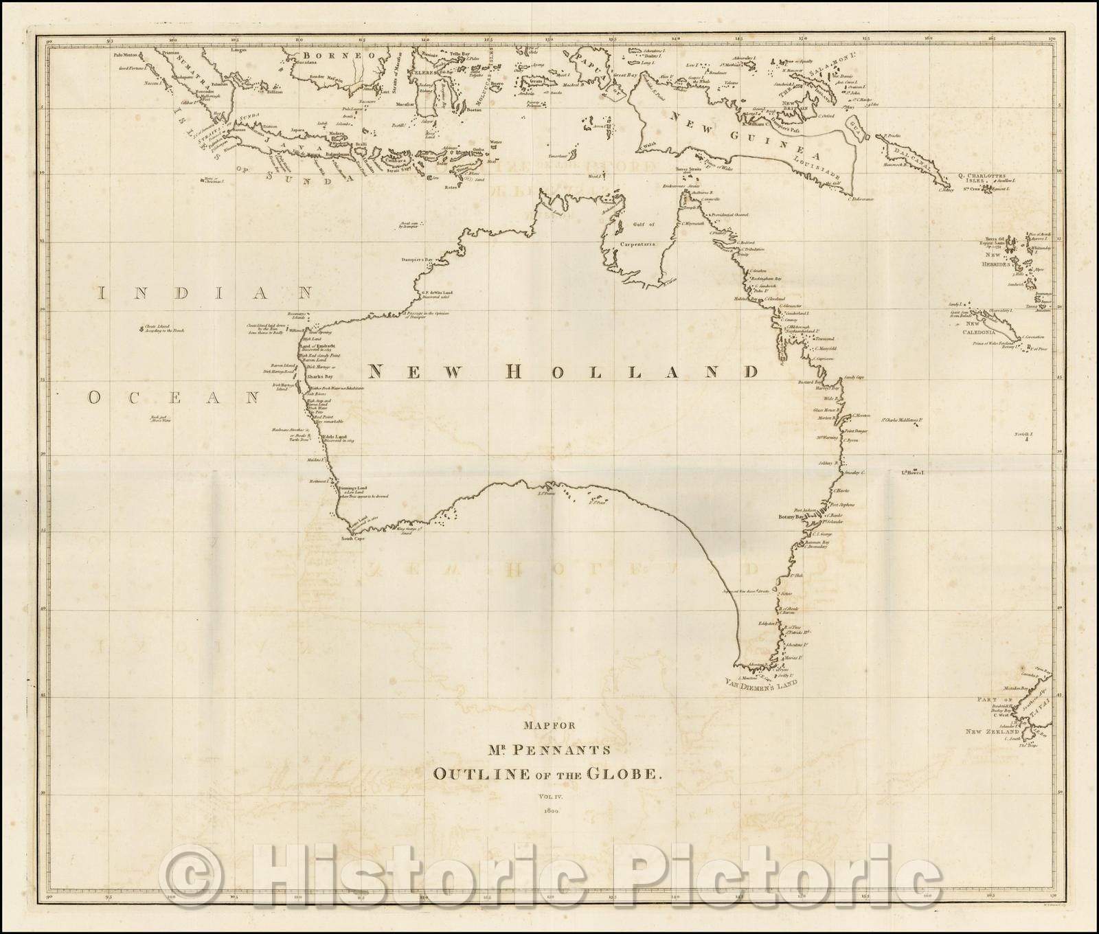 Historic Map - Australia Map For Mr. Pennants Outline of the Globe. Vol. IV, 1800, Thomas Pennant v2