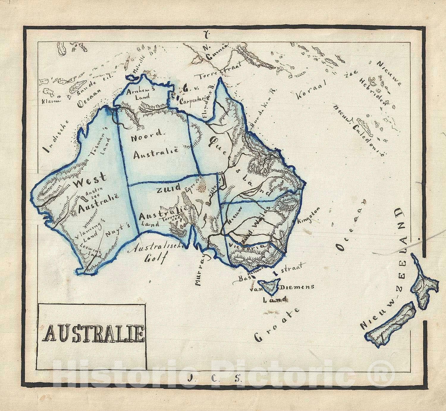 Historic Map : Australia and New Zealand, Sikkel Manuscript, 1871, Vintage Wall Art