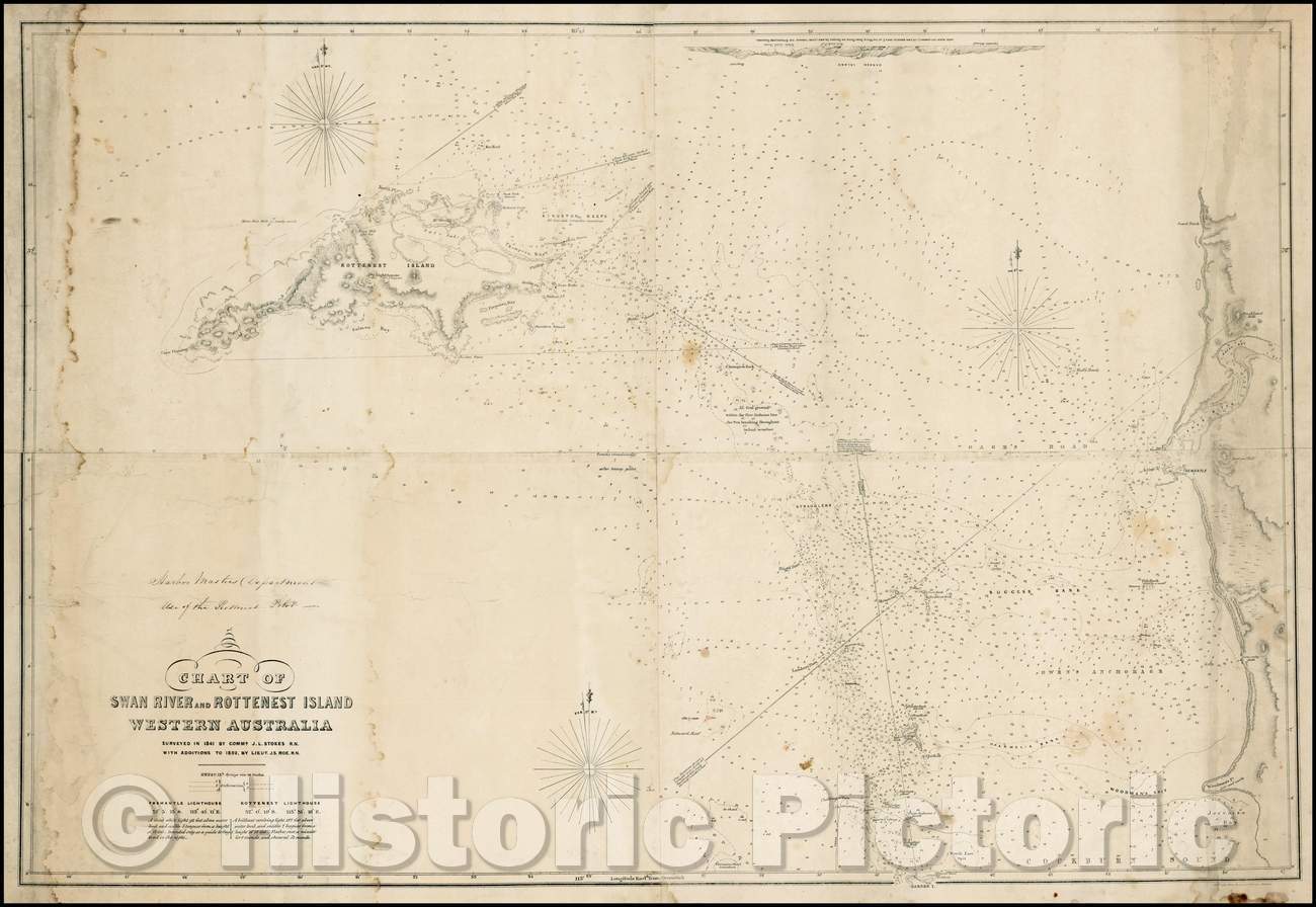 Chart of Swan River and Rottenest Island Western Australia Surveyed in 1841, 1840, John Septimus Roe