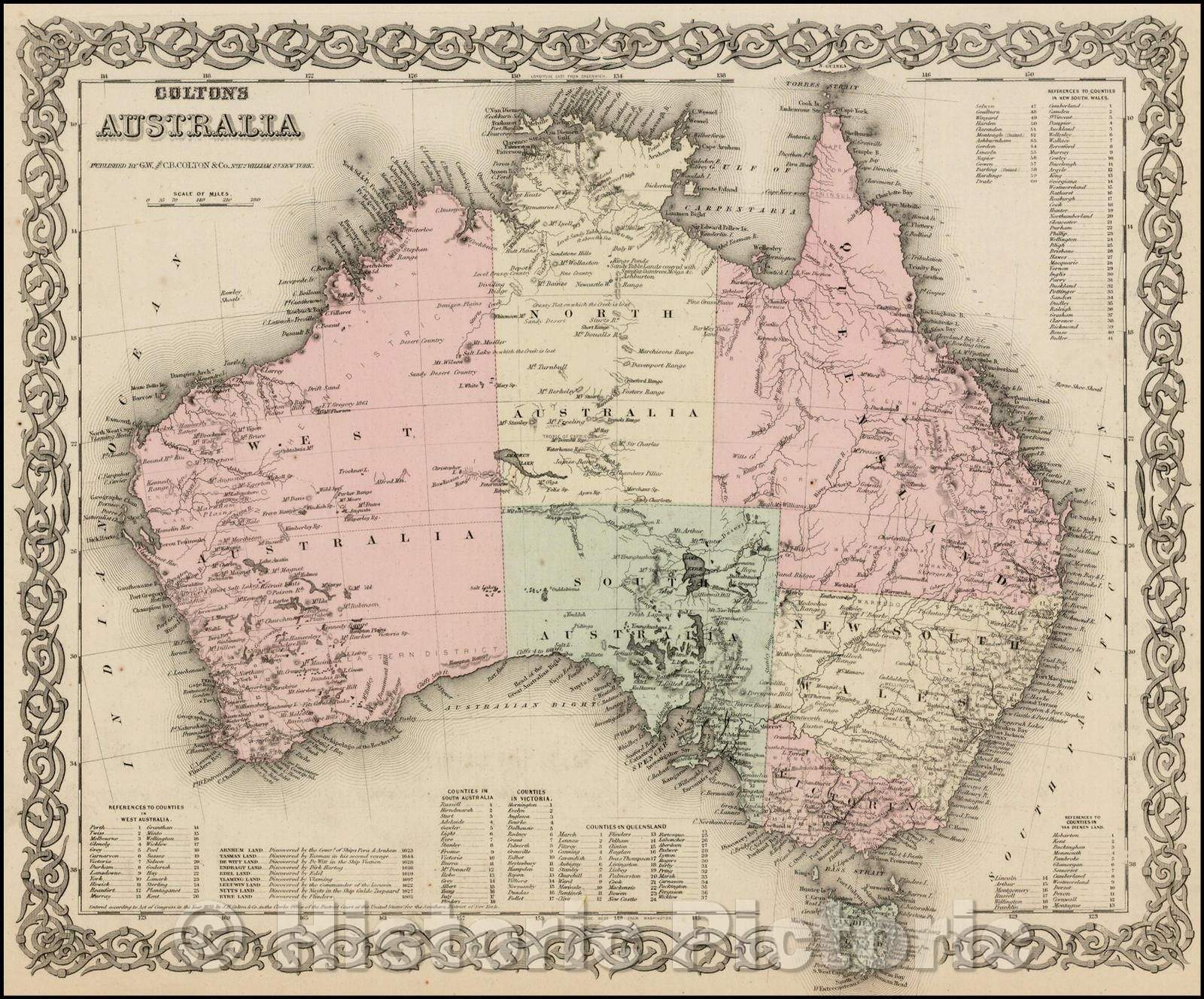 • .Historic Map - Colton's Australia, 1865, Joseph Hutchins Colton - Vintage Wall Art