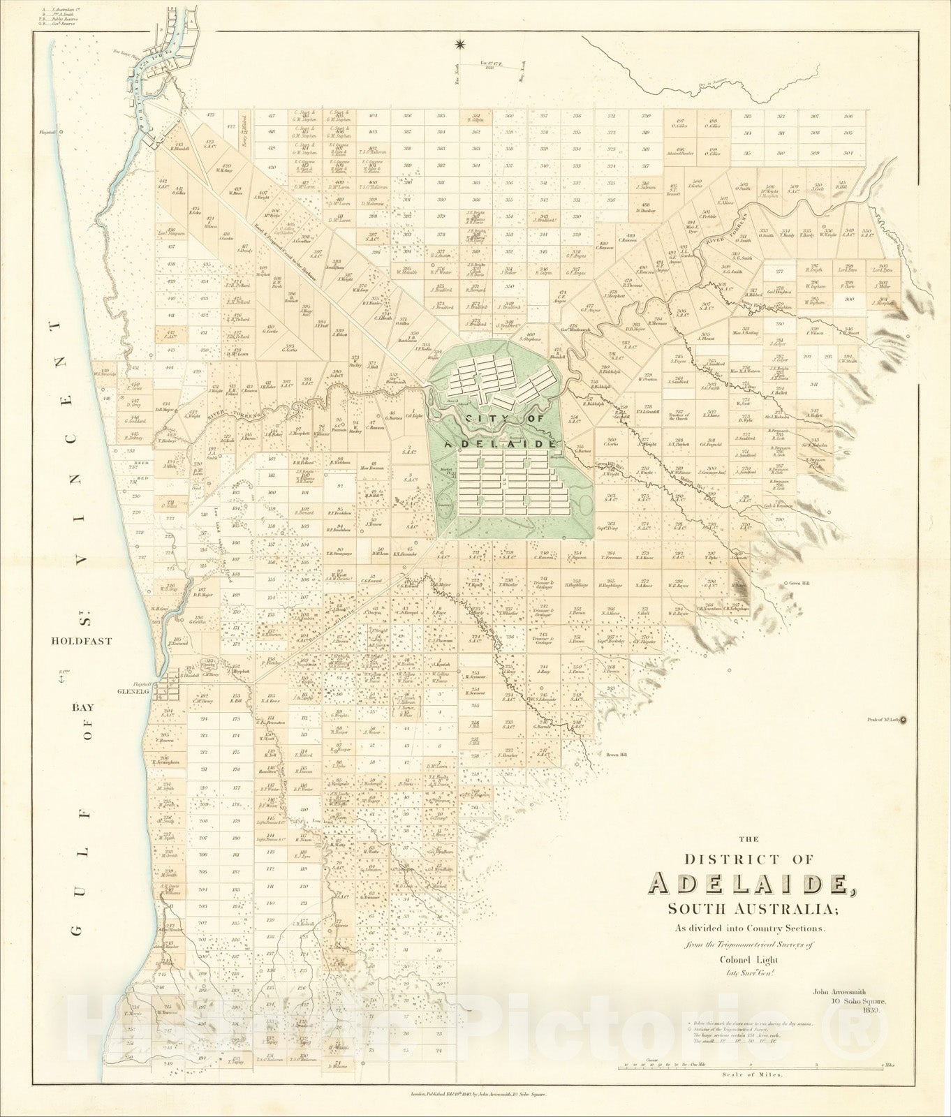 Historic Map : The District of Adelaide, South Australia; from the Trigonometrical Surveys of Colonel Light late Survr. Genl., 1839, Vintage Wall Art